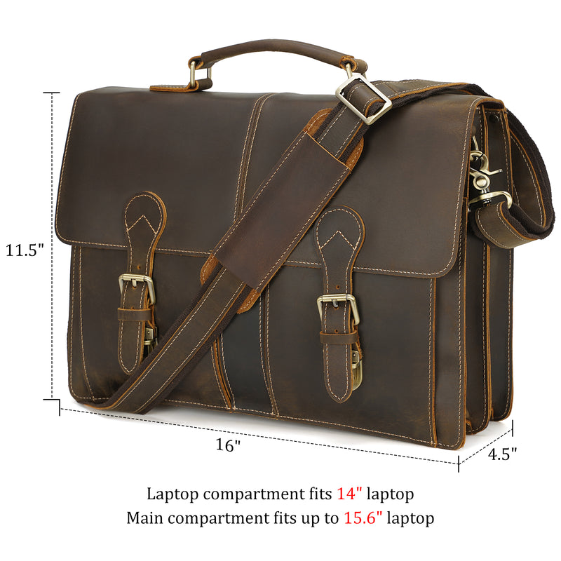 Polare 16" Full Grain Leather Messenger Bag Laptop Briefcase Bag Work Bag For Men with Premium YKK Zippers